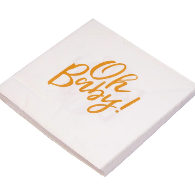 Oh Baby -lautasliinat viimeistelevät baby shower -kutsujen kattauksen. Lautasliinojen koko on 33 x 33 cm.