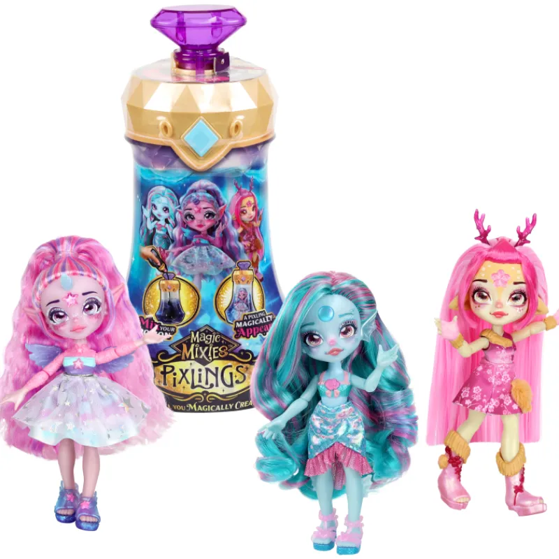 Magic Mixies Pixlings -pakkauksen avulla saa taiottua kauniin Pixling-hahmon. Lisää taika-ainekset ja sekoita eliksiiri pullossa. Lausu taikasanat ”Magicus Mixus”, ja katso, minkä kauniin Pixling-hahmon olet taikonut esiin! Onko se Marena-merenneito, Deerlee-kauris vai Unia-yksisarvinen?