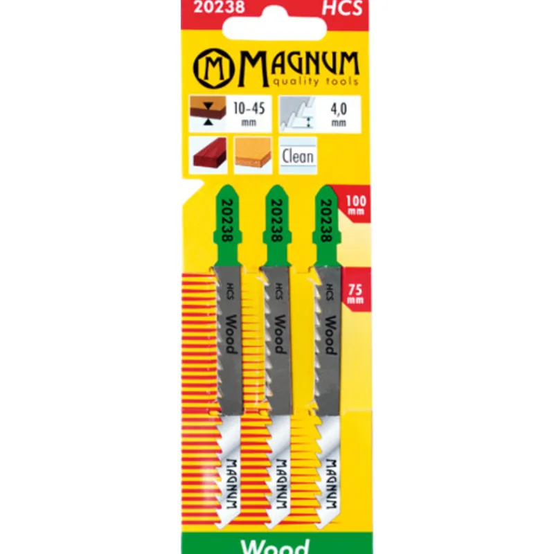 Magnum Pistosahanterä HCS 4,0 / 100 mm. Soveltuu 10-45 mm paksuiselle sahattavalle kappaleelle. Pakkauksessa on 3 kappaletta teriä.