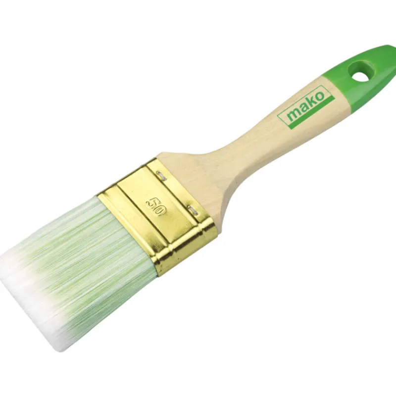 Huippulaadukas sivellin puunsuojaukseen. Siveltimessä reilusti harjaksia, jotta maalinottokyky on parempi. Harjakset eivät katkeile tai irtoa, ja voit maalata tehokkaasti aikaa säästäen. Ergonomisesti muotoiltu kahva vähentää väsymistä ja on valmistettu FSC-sertifioidusta koivusta. Holkki messinkiä. Mako puunsuojasiveltimet tunnistat vihreästä väristä kahvassa. Vaalea keinokuituinen All-in-one harjas erityisesti puunsuoja-aineille. Harjaksen vahvuusluokka 9.
