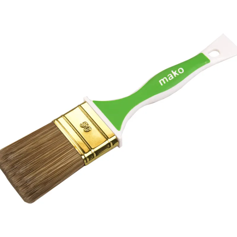 Ergonominen ja laadukas sivellin puunsuojaukseen. Harjakset eivät katkeile tai irtoa, ja voit maalata tehokkaasti aikaa säästäen. Ergonomisesti muotoiltu kahva vähentää väsymistä. Kätevä maalipurkinavaaja kahvassa. Holkki messinkiä. Mako puunsuojasiveltimet tunnistat vihreästä väristä kahvassa. Tumma harjas erityisesti puunsuoja-aineille.