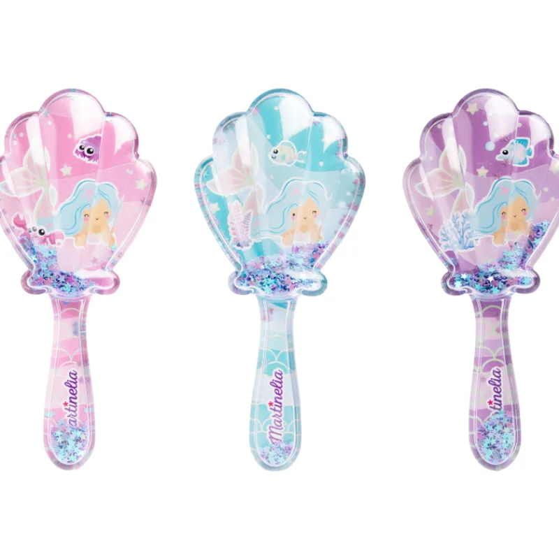 Värikäs ja kaunis Martinelia-hiusharja on suunniteltu erityisesti lasten käyttöön, ja sen simpukkamuotoilu tekee siitä houkuttelevan. Saatavilla kolme erilaista.