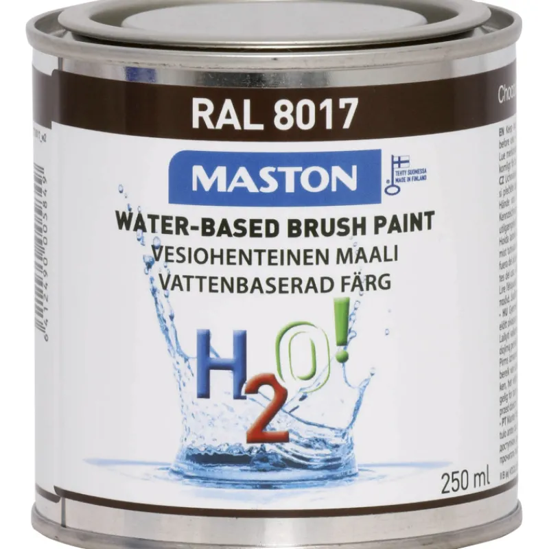 Maston COLORmix H2O on erittäin nopeasti kuivuva, akrylaattipohjainen, vesiohenteinen pintamaali sisä- ja ulkokäyttöön. Soveltuu puu- ja metallipinnoille. Pakkauskoko 250 ml. Väri suklaanruskea.