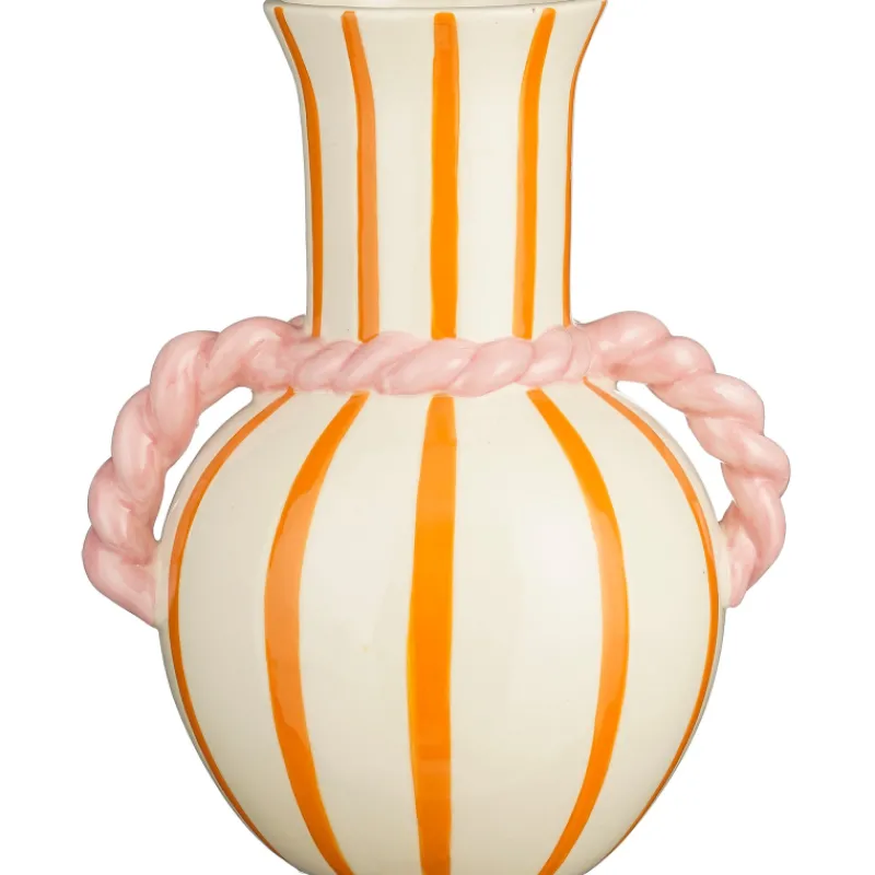 Leikkisä oranssiraitainen Mica Decorations -maljakko on todellinen katseenvangitsija. Kivitavarasta valmistetun maljakon koko on 18 x 14 x 22 cm.