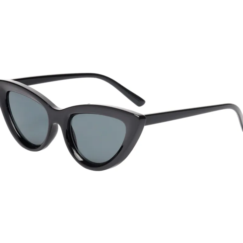 Yläreunaa kohti kapenevat, kissamaiset aurinkolasit luovat viimeisen silauksen näyttävään lookiin. Aurinkolaseissa on mustat muovisangat ja kevyet polykarbonaattilinssit, joissa savun väri.