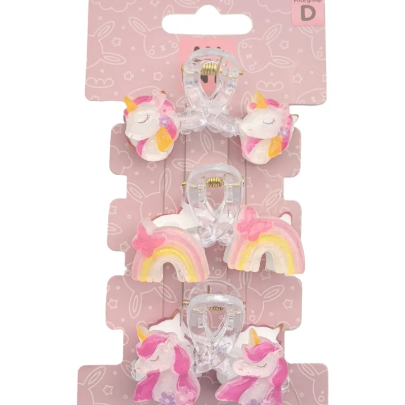 Sievät hiusklipsit on koristeltu yksisarvisilla ja sateenkaarilla.