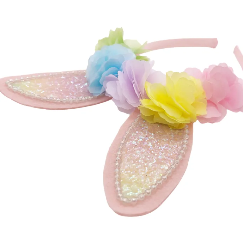 Iloa ja leikkisyyttä kesäiseen asuun! Suloinen Miny-hiuspanta on koristeltu kauniin värikkäillä kukilla. Kimaltelevat pupunkorvat tuovat pantaan mielikuvituksellista ilmettä.
