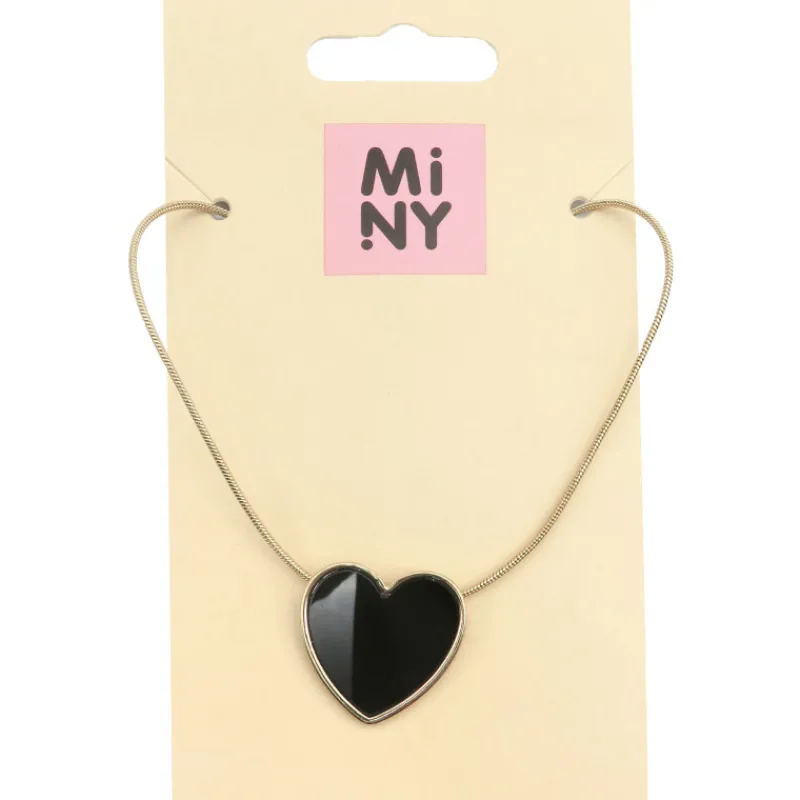 Kullanvärisestä ketjusta ja mustasta sydämestä koostuva Miny-kaulakoru sopii sekä arkeen että juhlaan.