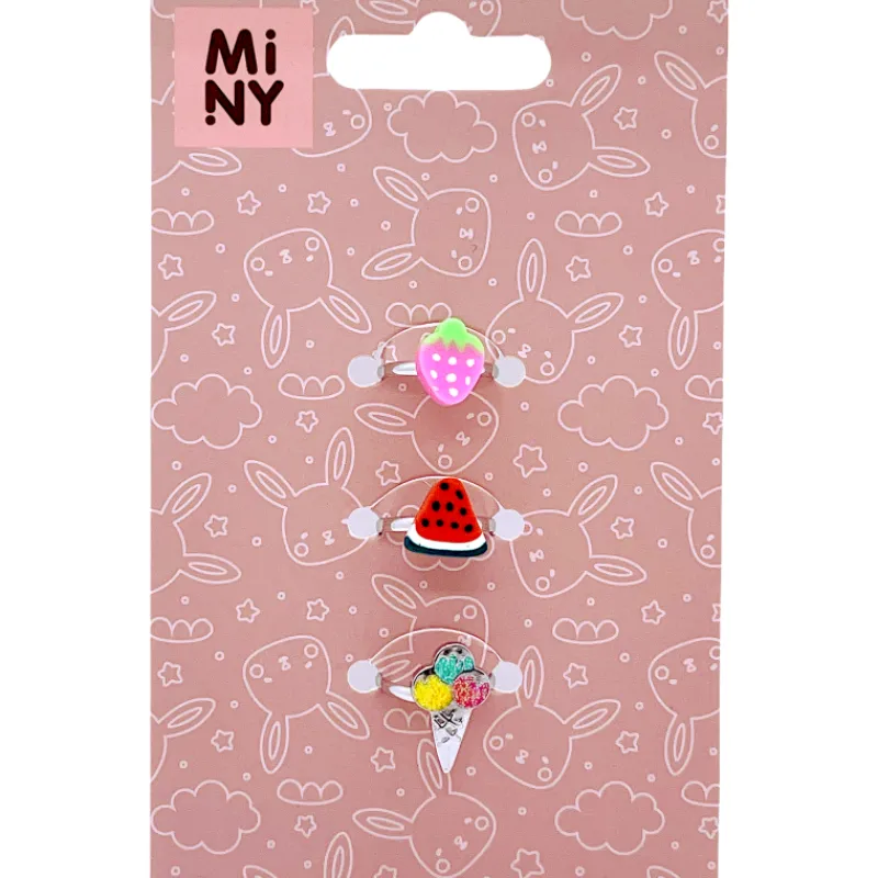 - 3 kpl erilaista sormusta: melooni, jäätelö ja mansikka