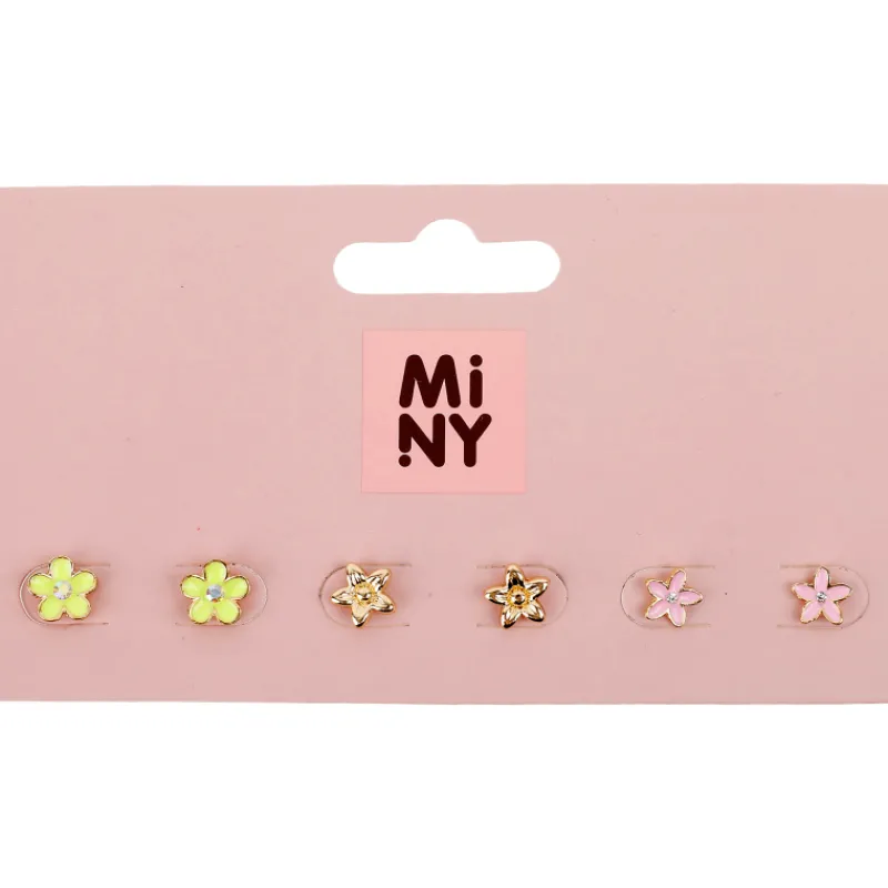 Miny-korusetti sisältää kolme paria kukan muotoista nappikorvakorua. Nikkeli-vapaa.