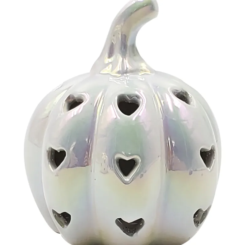 Sydämenmuotoisilla aukoilla koristeltu Miny-koristekurpitsa on suloinen sisustusesine syksyyn.
