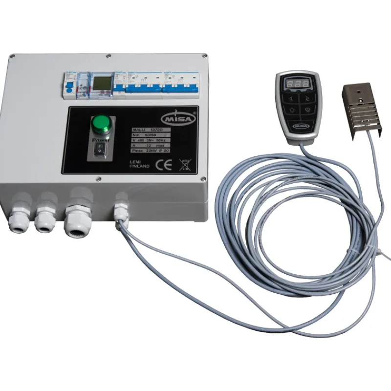 Soveltuu max. 22 kW 2-tehoryhmään kytketyille kiukaille. Ohjauskeskuksessa on ryhmäsulakkeet kiukaan tehoryhmille. Ohjauskeskuksessa on peräti neljä eri ohjausmahdollisuutta. Käyttö tapahtuu joko digitaalisella ohjauspaneelilla, digitaalisella viikkokellolla, ajastetulla ohituskytkimellä tai kauko-ohjaamalla ulkoisesta järjestelmästä. Ohjauskeskus on kuivaan tilaan asennettava, mutta digitaalinen ohjauspaneeli on mahdollista asentaa vaikka saunatilaankin. Ohjauspaneelin kaapelin pituus on 5 m ja saunaan tulevan anturin kaapelin pituus 10 m. Materiaali muovia.