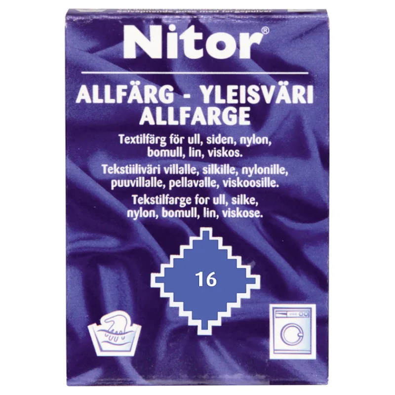 Nitor Yleisväri 15 kirkkaansininen sopii myös arkojen tekstiilien värjäykseen. Voit käyttää Nitor yleisväriä niin villalle, silkille, nylonille, puuvillalle, pellavalle kuin viskoosillekin. Värjäys voidaan tehdä joko käsin tai pesukoneessa, hyvin aroille materiaaleille suositellaan kuitenkin käsin värjäystä. Nitor yleisväri on ns. suojaväri, joten se sopii käytettäväksi erityisen hyvin tekstiileille, joita pestään harvoin. Voit käyttää värjäyksen kanssa myös Nitor tekstiilivärisuolaa, jolloin väri kiinnittyy pesunkestävästi!