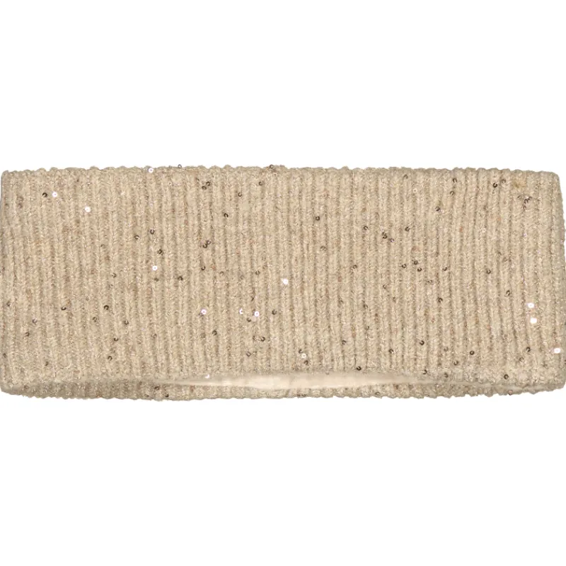 Naisten noixx Mena-neulepanta pehmeällä ja lämmittävällä vuorilla sekä kimaltelevalla paljetti-kuosilla. Väri beige/kulta.