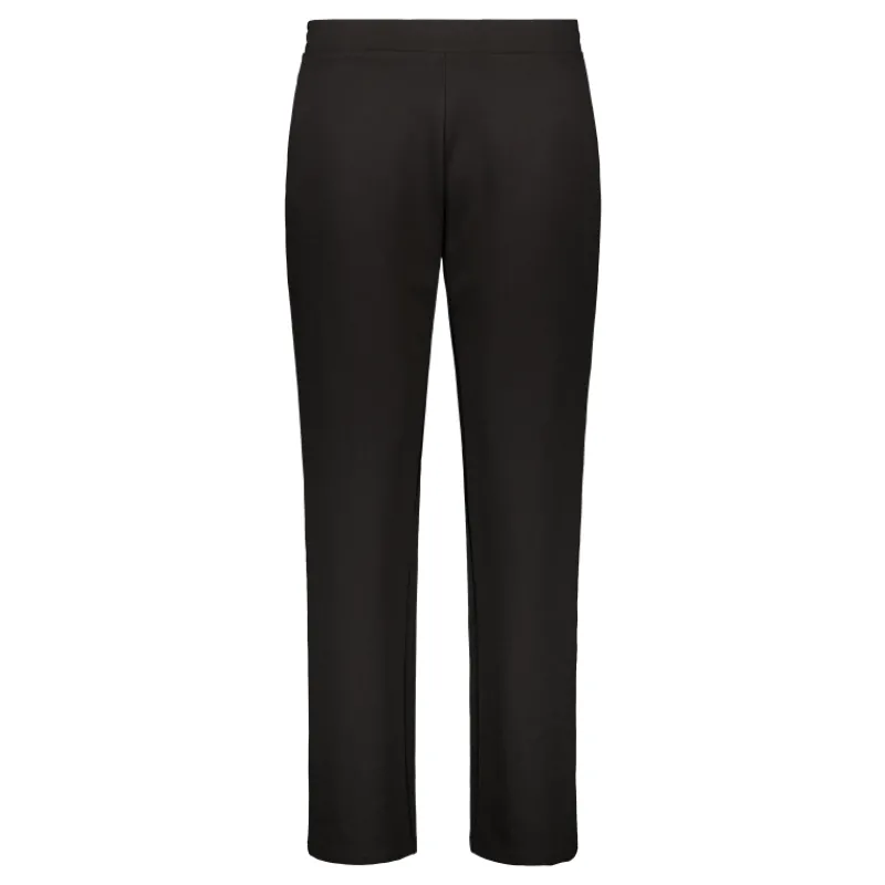 Mustat housut ovat paksua, laskeutuvaa trikoota, ja niissä on normaalikorkuinen vyötärö ja kevyesti kapenevat lahkeet.