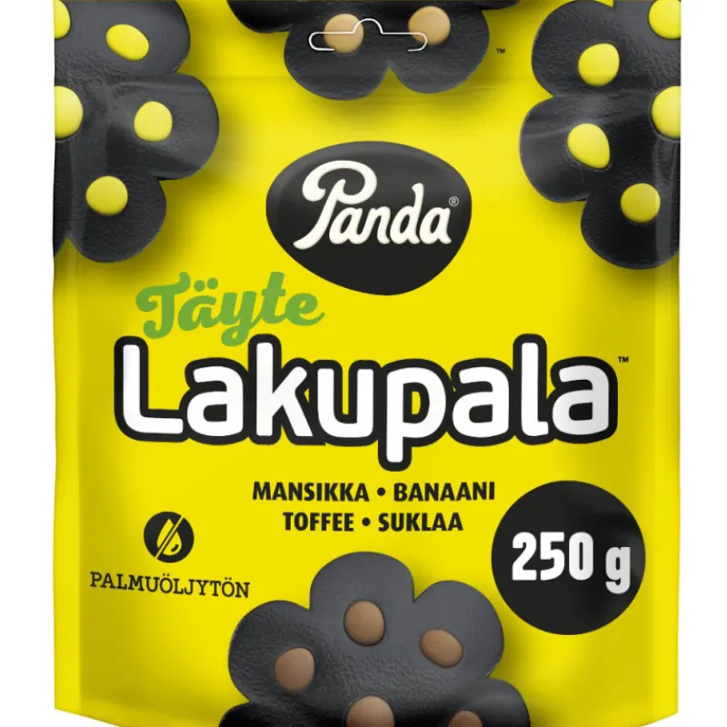 Veikeät lakupalat yhdistävät perinteisen lakritsin sekä suklaan, banaanin, toffeen ja mansikan makuisen täytteen. Jokainen löytää varmasti suosikkinsa tästä makujen ilotulituksesta!