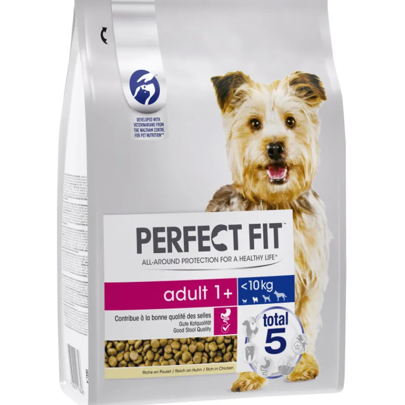 Perfect Fit kana soveltuu aikuisille, alle 10 kg, koirille. Sen pienempi nappulakoko on suunniteltu pienten koirien suuhun sopivaksi. Monipuolisessa ravinnossa on useita terveyshyötyjä koirallesi. Esimerkiksi ravinnon säädelty kivennäisaineiden koostumus tukee alempien virtsatiehyiden hyvinvointia ja runsas B-vitamiini ja rauta auttavat pitämään koirasi elinvoimaisena.