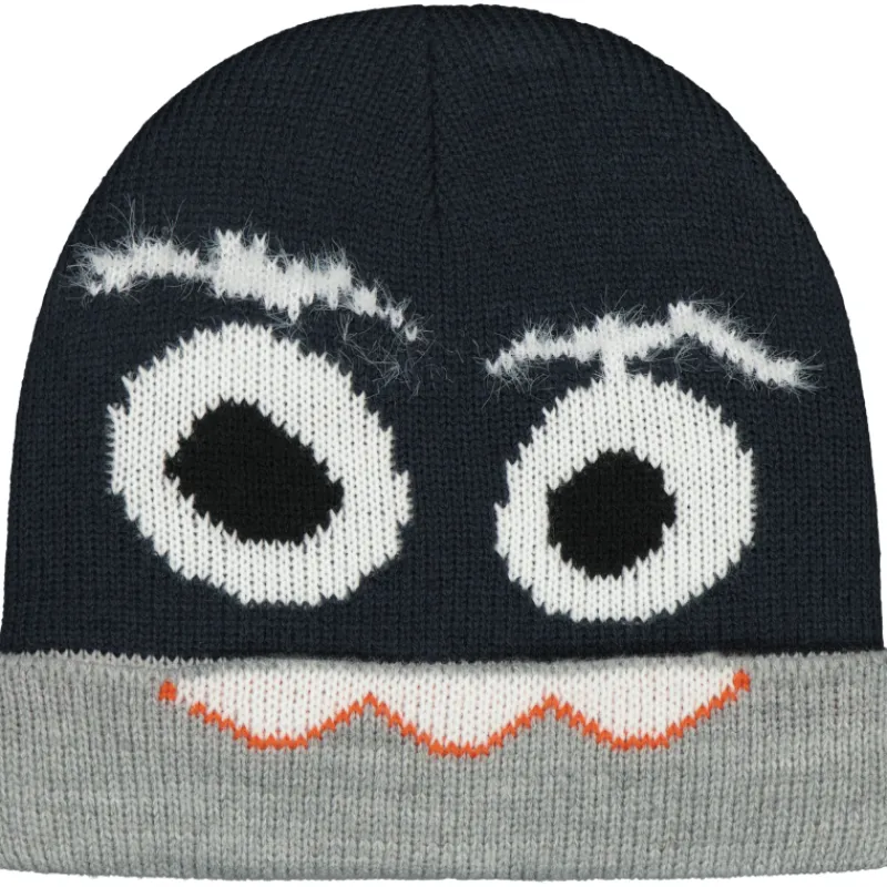 Tupsuttomassa pipossa on kiva Silmät-kuosi, väri tummansininen/harmaa/valkoinen.