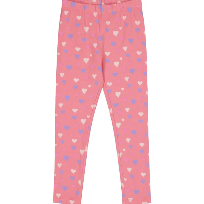 Pienten lasten leggingsit kevyttä, pehmeää ja joustavaa puuvillasekoitetrikoota. Hauska sydän-aiheinen printti-kuosi, väri koralli/monivärinen.