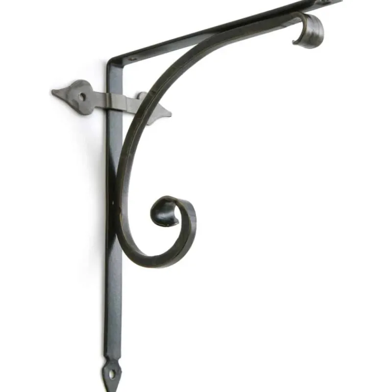 Takorautaisessa hyllynkannakkeessa näkyy käsityön jälki. Käsin taottu kannake on mustaksi maalattua terästä. Takorautatuotteet antavat perinteistä, uniikkia ja arvokasta ilmettä kesämökin, piharakennuksien ja kodin sisustuksen yksityiskohtiin.