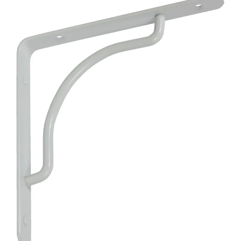 Tyylikäs, metallinen hyllynkannatin kodin sisustamiseen. Väri valkoinen. Pakkaus sisältää ruuvit.