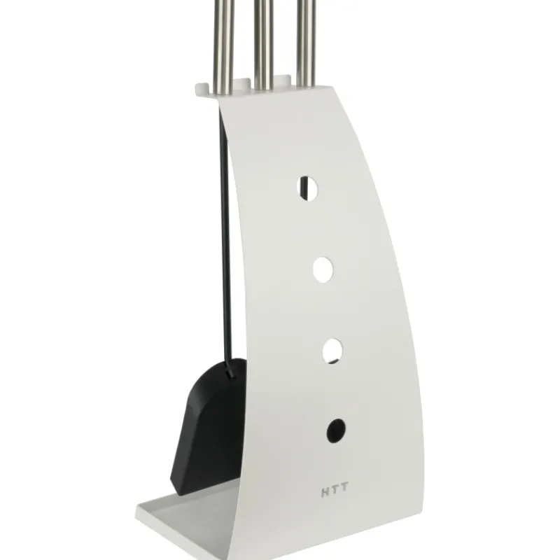Pislan omaa designia oleva takkasetti sisältää kolme eri takkavälinettä: tuhkalapion, tuhkaharjan, hiilikoukun sekä itse telineen. Teline on pulverimaalattu. Mitat: 25 x 56 x 16 cm. Väri: valkoinen.
