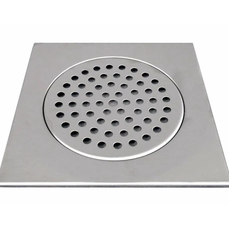 Pisla Lattiakaivon kansi. Materiaali on rosteri, kiillotettu ruostumaton teräs. Mitat 197 x 197 mm.