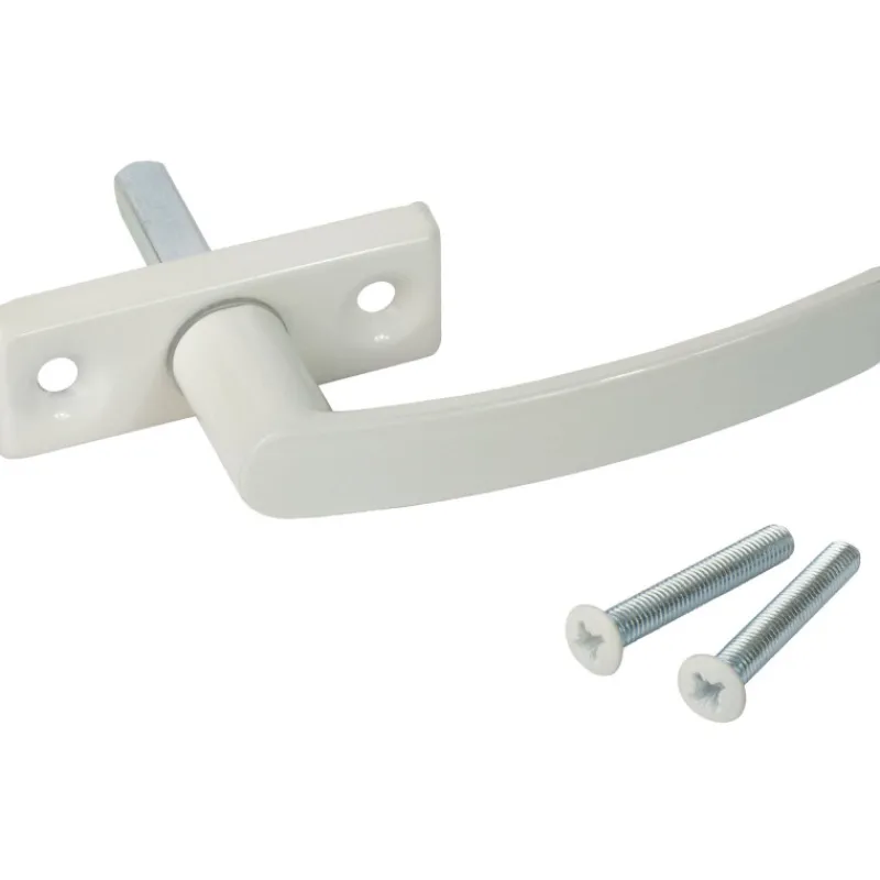 Malliltaan perinteinen avaus- ja sulkemispainike ikkunaan. Materiaali samakkia, väri valkoinen.