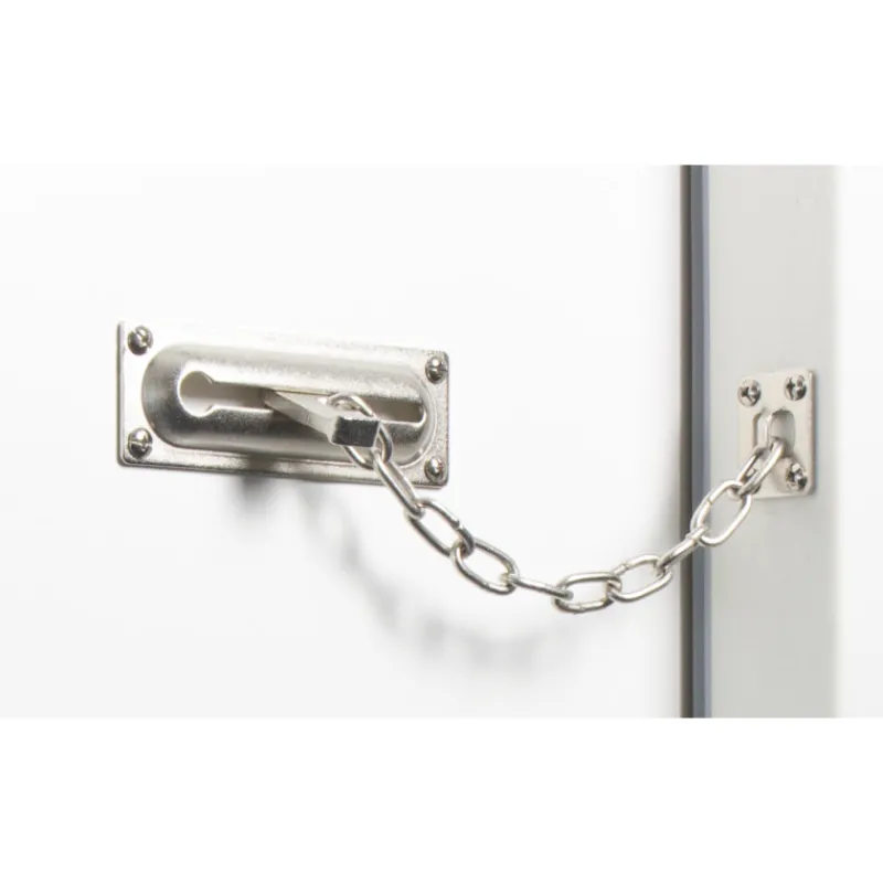 Vahva ja kestävä varmuusketju lisää turvallisuutta, sillä se estää luvattoman tunkeutumisen asuntoon estämällä oven aukeamisen kokonaan. Varmuusketju kiinnitetään ruuveilla oven sisäpuolelle. Materiaali terästä/nikkeliä. Mitat 125 x 41 + 40 x 32 mm.