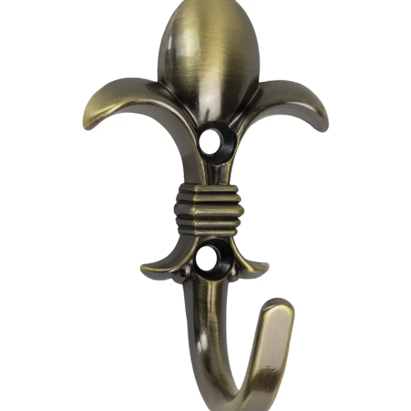 Tyylikäs ja koristeellinen vaatekoukku antiikkimessinginväristä samakkia. Pituus 72 mm. Koukku sopii hyvin eteiseen vaatteiden ripustamista varten.