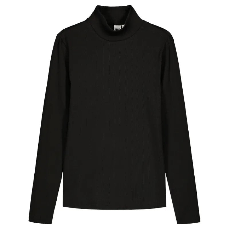 Yksivärinen naisten pusero puolipoolo- eli kilpikonnakauluksella. Pitkähihainen pusero on myötäilevää ribbitrikoota.