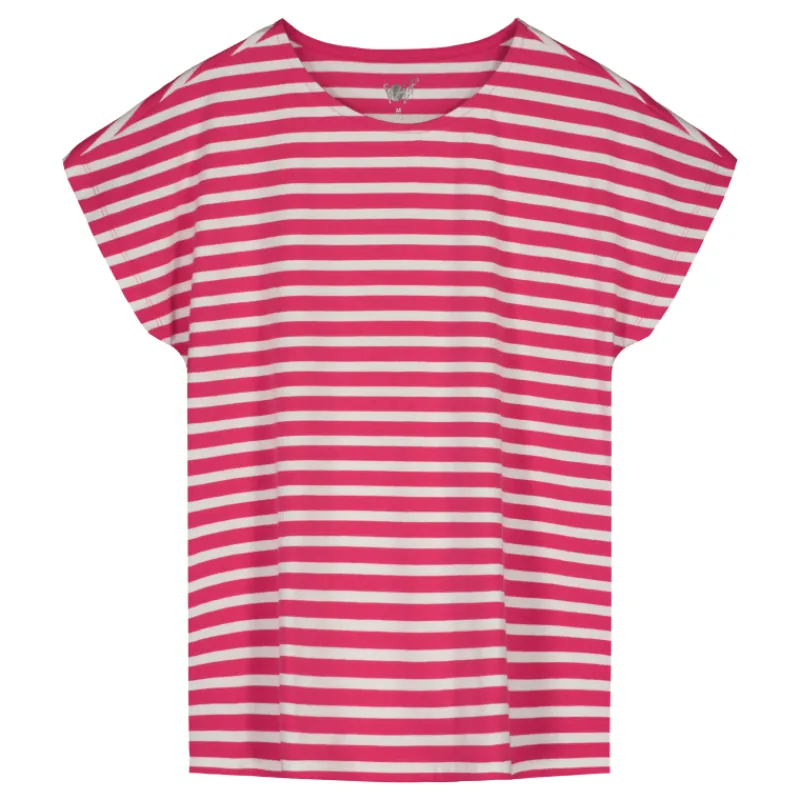 Raitakuosinen naisten T-paita mukavaa puuvillasekoitetrikoota.
