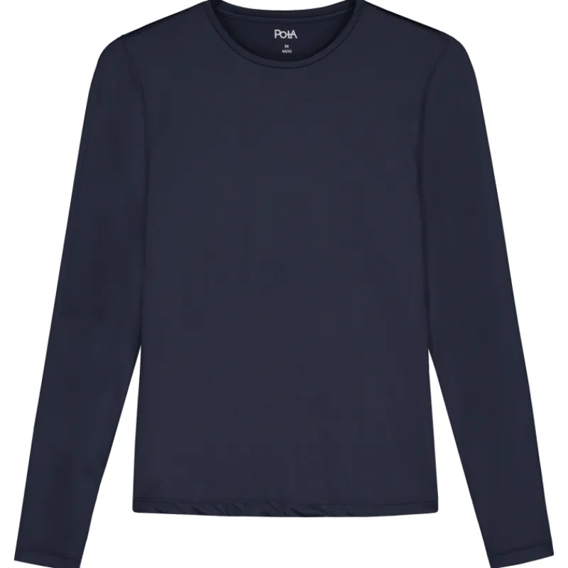 Naisten pitkähihainen paita ohutta ja myötäilevää polyamidisekoitetrikoota. Yksivärinen tummansininen kuosi.
