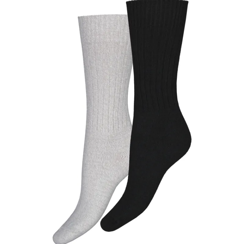 Naisten sukat kevyttä, superpehmeää neulosta, 2 pr/pkt. Väri musta + meleerattu harmaa.
