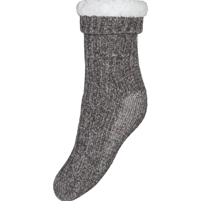Paksut ja lämpimät naisten chenille-pehmosukat, 1 pr/pkt. Sukat ovat palmikkoneulosta ja niissä on paksu teddykarvamainen vuori. Pohjissa on liukuesteet.