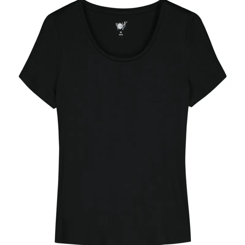 Yksivärinen, lyhythihainen naisten pusero erittäin pehmeää viskoosisekoitetrikoota.