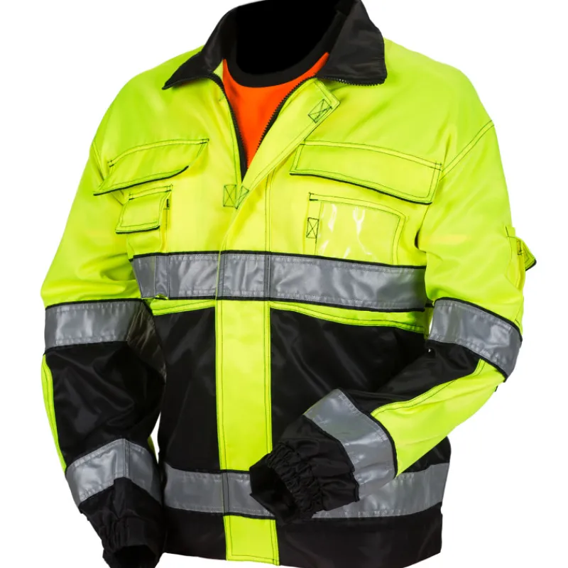 Kelta/musta vuoriton varotakki. Materiaali 80% polyesteriä ja 20% puuvillaa. Pesu 40 asteessa. EN 20471 Lk.2.