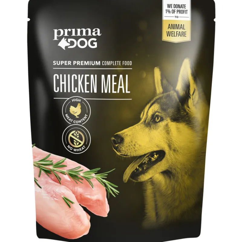 Vehnätön Primadog annosateria tuo lihaisan mehevän hetken jokaiseen ruokailuun. Tarjoile herkullinen kana-täysravinto sellaisenaan pääruokana tai kuivaruoan lisukkeena.