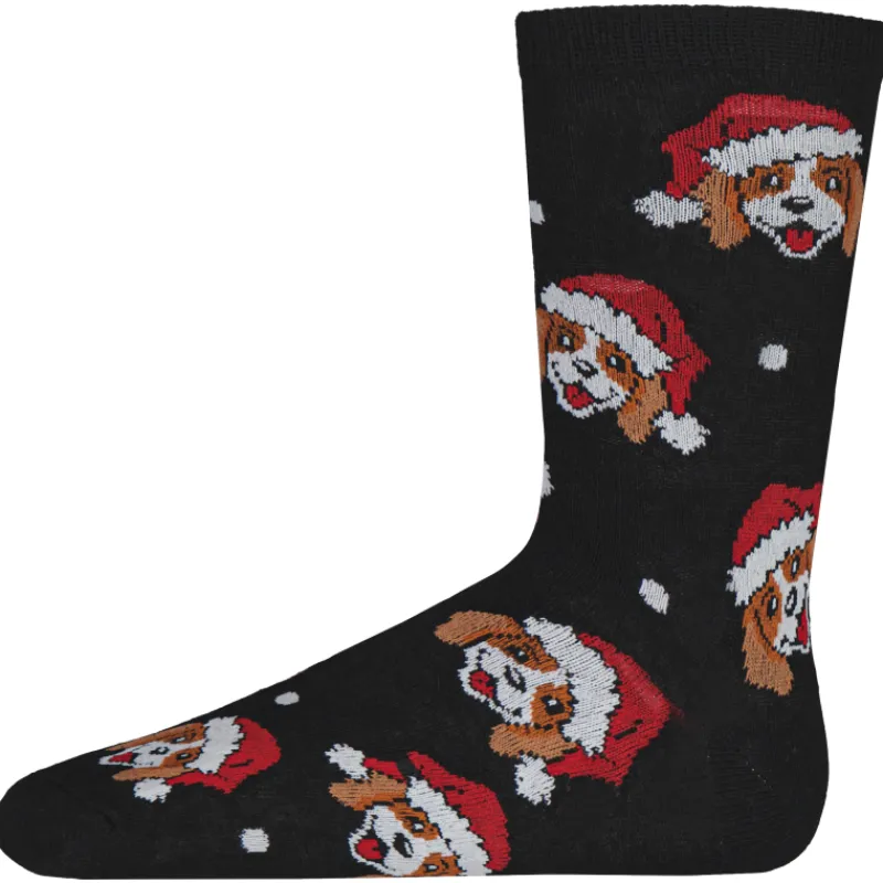 Jouluisella koirakuosilla kuvioidut isompien lasten nilkkasukat, 1 pr/pkt. Väri musta/punainen/monivärinen. Yksi koko 31–36.