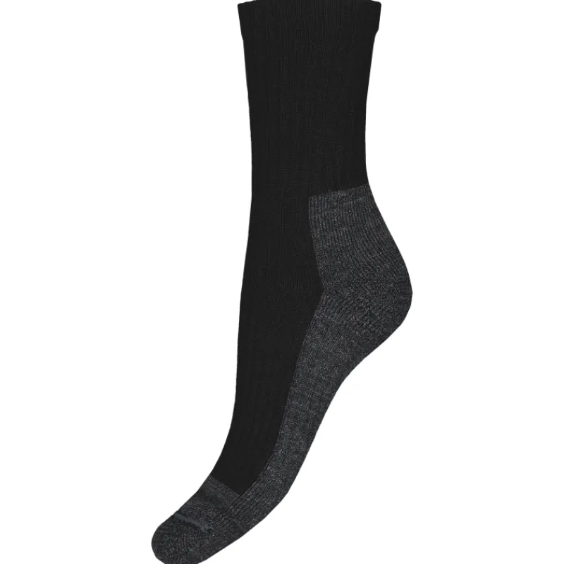 Sukkien paksu, merinovillaa sisältävä pohja lämmittää jalkoja mukavasti. Merinovilla on kosteutta iholta ulospäin siirtävä, nopeasti kuivuva sekä kosteanakin jalkoja lämmittävä materiaali, jota sisältävissä sukissa jalkojen olo pysyy kuivana ja ja lämpimänä.