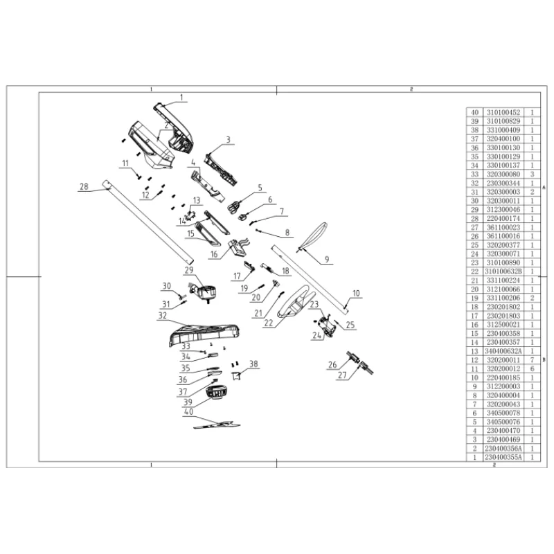 Kytkentärasia Brücke LTC40 2in1 akkuruohoraivuriin. Varaosanumero 20.