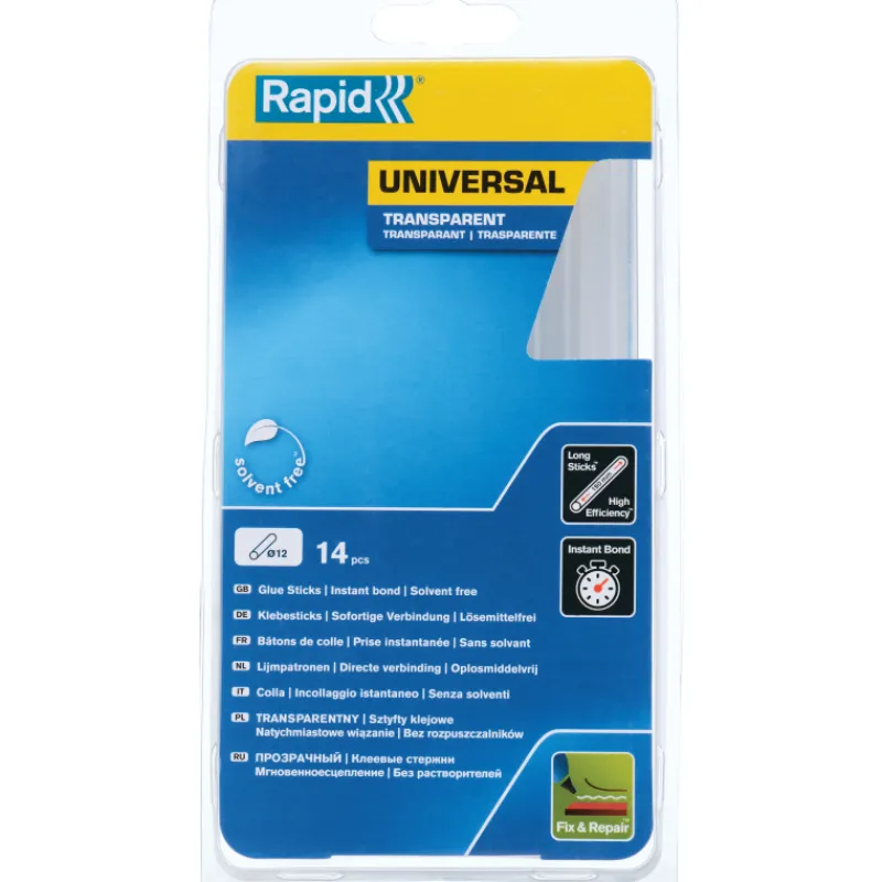 Värittömät Rapid-kuumaliimapuikot sopivat monenlaiseen käyttöön, esimerkiksi nikkarointiin ja pieniin korjaustöihin, askarteluun, koristeluun ja muuhun kiinnittämiseen. Monikäyttöinen kirkas yleisliima muodostaa pitävän kiinnityksen mm. puuhun, nahkaan, tekstiileihin, korkkiin, muoviin ja pahviin.