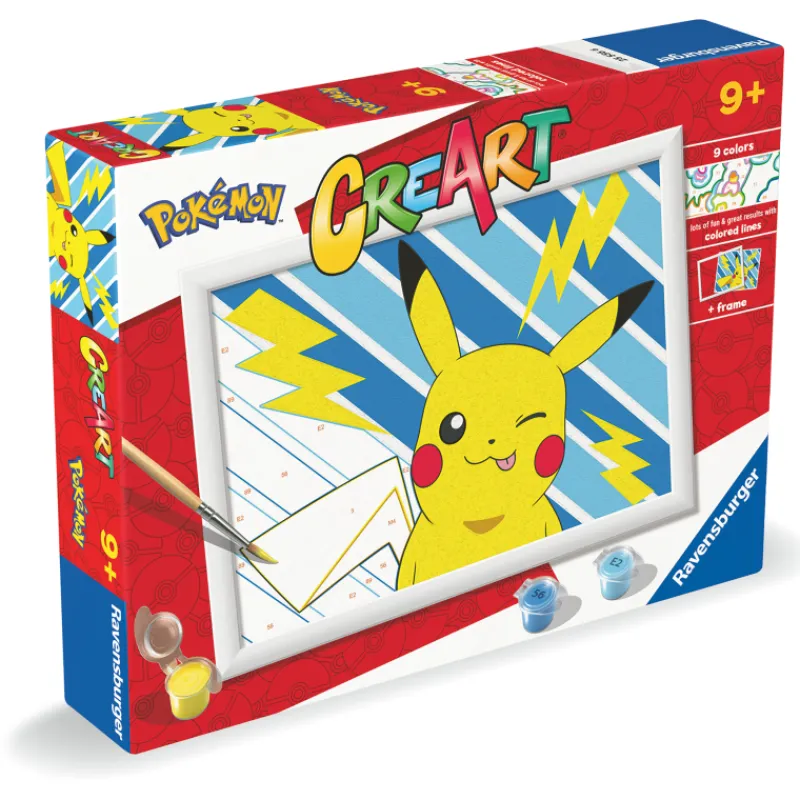 CreArt tekee kenestä tahansa taiteilijan! Ravensburger CreArt Cheeky Pikachu -setti sisältää kaiken, mitä lapset tarvitsevat tullakseen taiteilijoiksi. Pakkauksesta löytyy laadukas hieno sivellin sekä paksu akryylimaali, joiden avulla aloittelevat taiteilijat saavat upeita tuloksia aikaan. Maalauksen reunat on painettu mustan sijaan maalattavan alueen värillä, minkä ansiosta valmiin maalauksen reunat ja ääriviivat näyttävät ammattimaisemmilta.