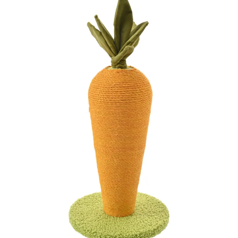 Porkkananmuotoinen raapimapuu tuo piristystä kotiin ja tarjoaa kissalle täydellisen paikan kynsien huoltoon. Raapimaporkkanassa on oranssi juuttinaru, kangastupsut ja vihreä pörröalusta.
