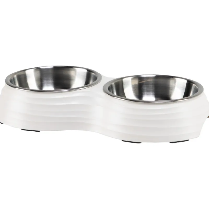 Pieni tuplamelamiinikuppi sopii pienille koirille ja kissoille. Tyylikäs ja kestävä tuplaruokakuppi on konepesun kestävä ja helppo puhdistaa irrotettavien ruostumattomasta teräksestä valmistetun sisuskuppiensa ansiosta. Ruokakupin pohjassa on liukueste, joka pitää kupin hyvin paikoillaan.