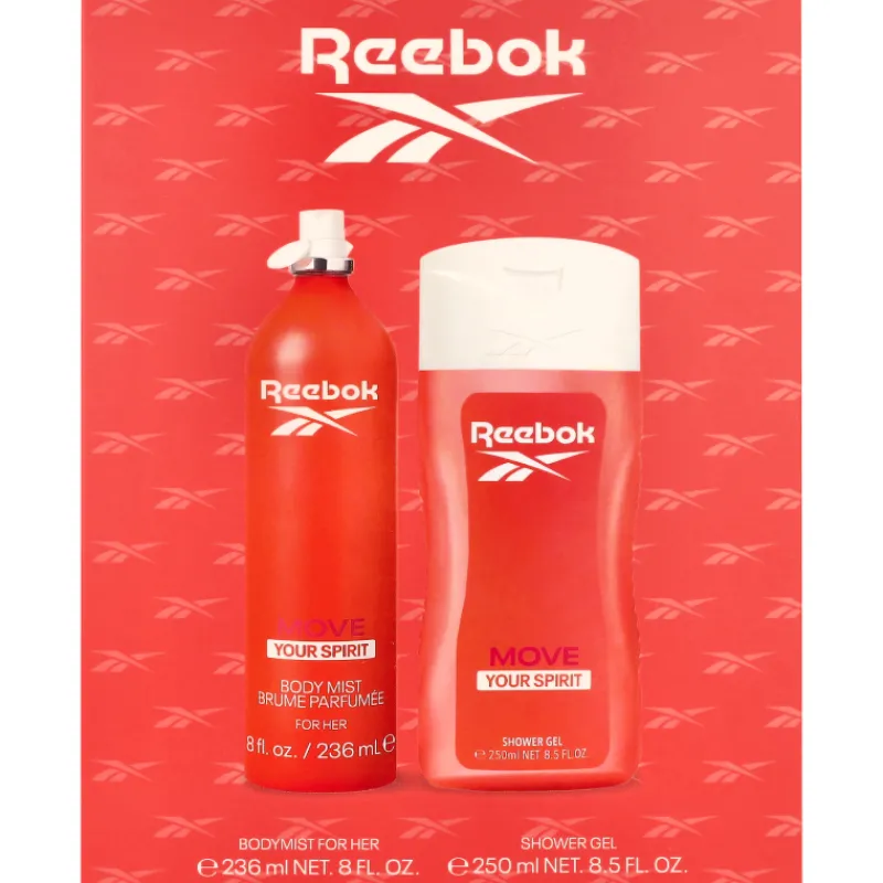 Reebok Move Your Spirit -lahjasetti naisille yhdistää kaksi ihanan aistillisen tuoksuista tuotetta. Jokapäiväisiin suihkuhetkiin sopivat raikkaat tuotteet jättää iholle ihanan tuoksun. Osta omaan käyttöön kotiin tai lahjaksi läheiselle!