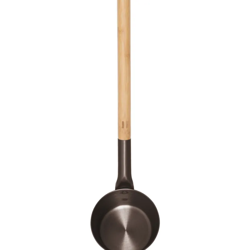 Rento-saunakauha yhdistää ajattoman tyylikkyyden käteensopivaan muotoiluun. Kauhan metalliosa on tervanväriseksi anodisoitua alumiinia ja kahva lämpökäsiteltyä bambua. Löylykauha sopii käytettäväksi sekä alumiinisten että bambuisten kiulujen kanssa.