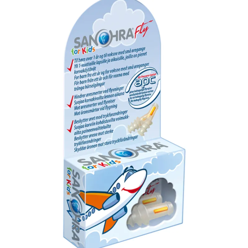Sanohra Fly lasten korvatulpat auttavat tekemään lentomatkustuksesta mukavampaa. Ne auttavat suojaamaan tärykalvoja lentokoneen paineenvaihtelun aiheuttamalta kivulta ja säryltä. Samalla ne hidastavat ja säätelevät tärykalvoon kohdistuvaa paineenvaihtelua, jolloin tärykalvo ei koe paineenvaihtelua niin voimakkaana kuin ilman korvatulppaa.