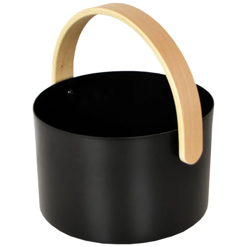 Moderni, mustaksi maalattu alumiininen saunasanko. Kahva pyökkiä. Sangon tilavuus 6 l. Väri mattamusta.