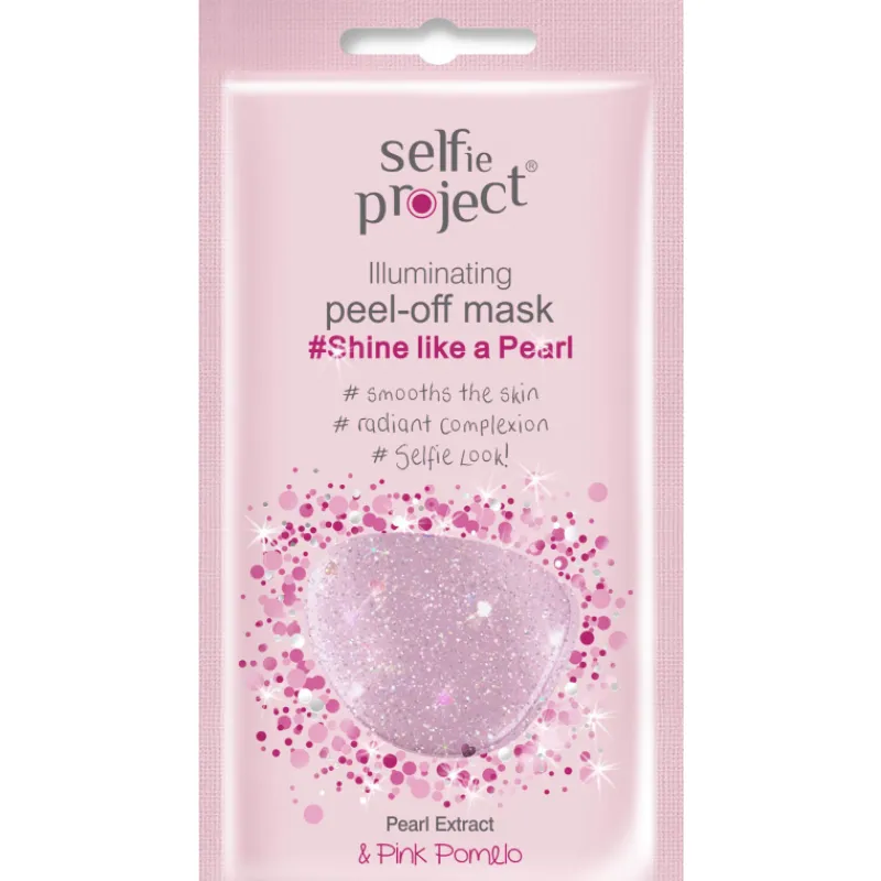 Selfie Project -kirkastava ja glitterinen Peel-Off kasvonaamio auttaa saavuttamaan kosteutetun ja tasapainoisen ihon. Naamion koostumus virkistää ja elvyttää ihoa antaen sille luonnollisen hehkun. Ihosta tulee kirkkaampi ja sävystä tasaisempi.